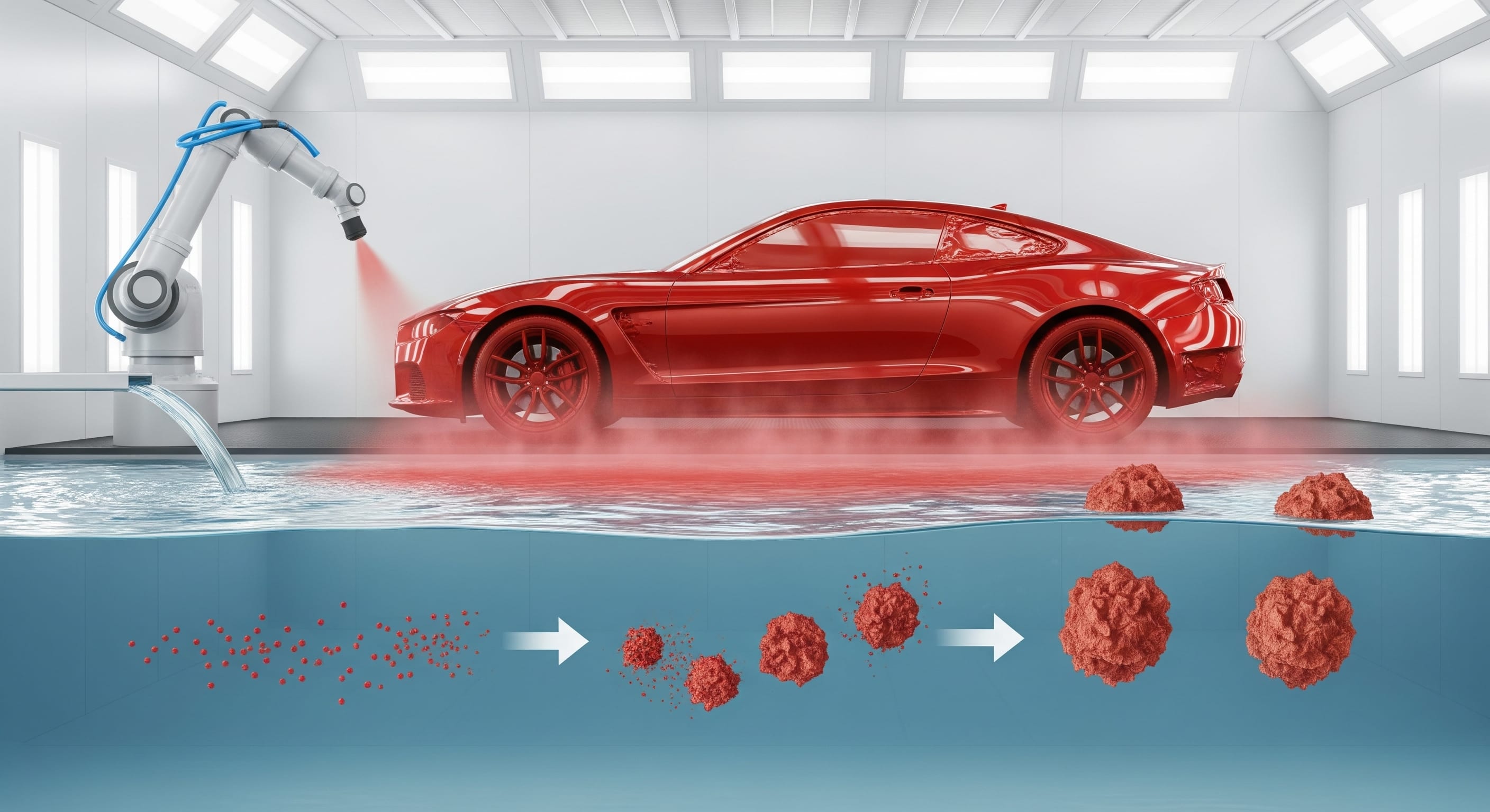 Trong quá trình sơn phủ bề mặt sản phẩm ở các dây chuyền sơn, có một phần vật liệu sơn không bám lên chi tiết mà đi ra ngoài không khí, ảnh hưởng đến hoạt động của dây chuyền và gây nên hàng loạt vấn đề về môi trường làm việc. Đứng trước thực trạng đó, chúng tôi đã phát triển công nghệ Paint detackification để loại bỏ lượng sơn này một cách hiệu quả.